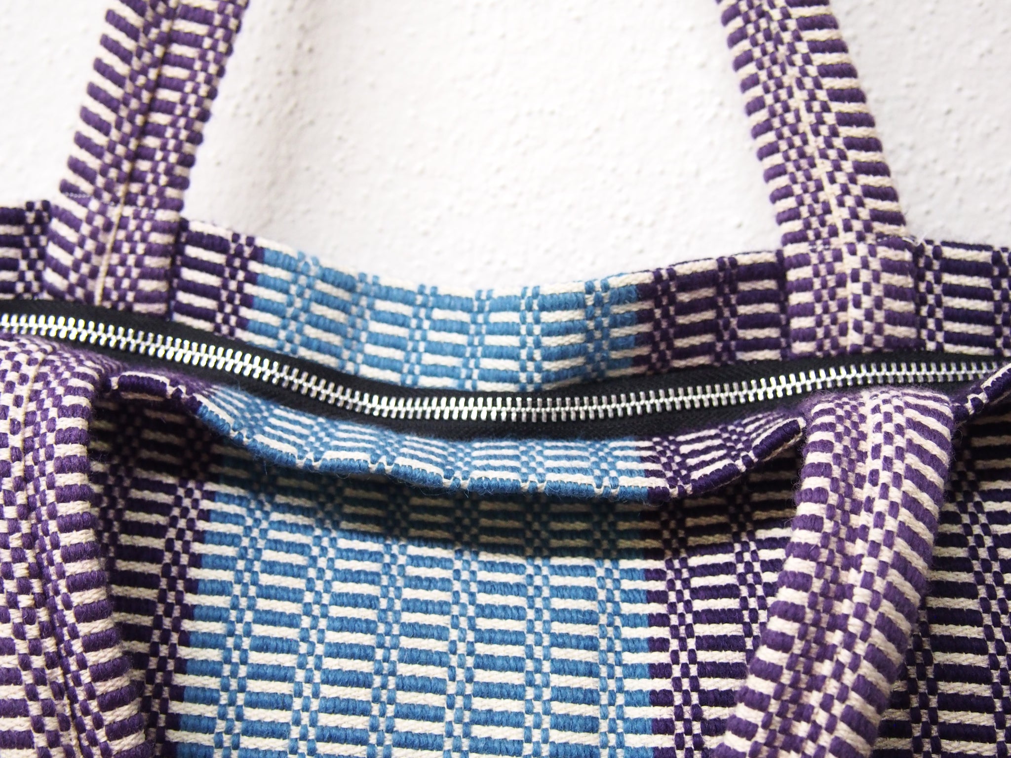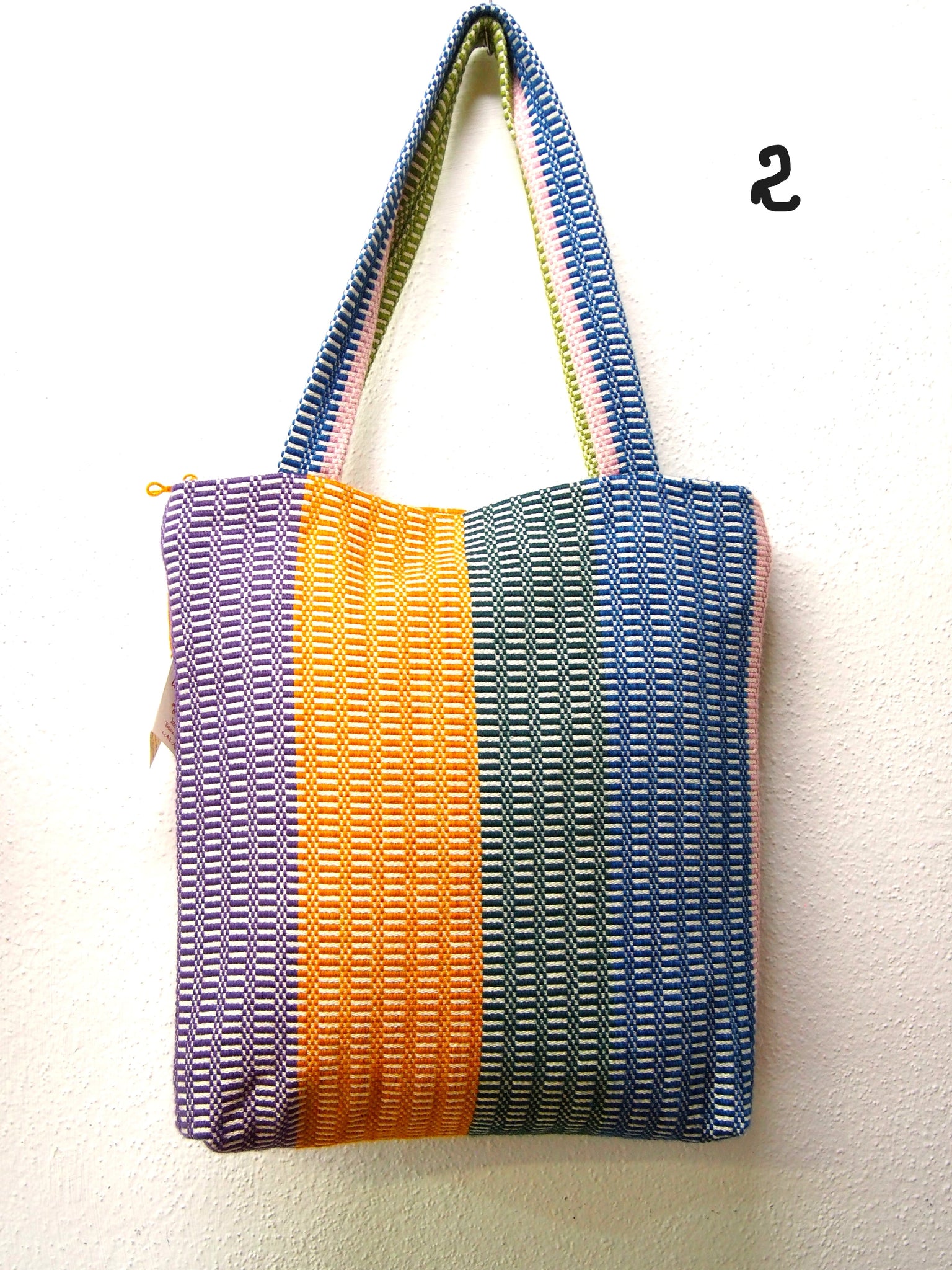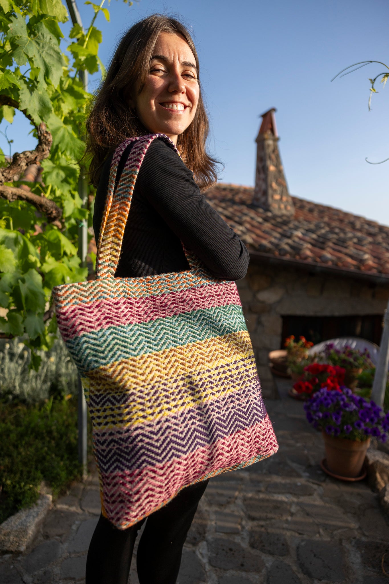 BORSA a spalla di LANA e COTONE, tinta con COLORI NATURALI. Il tessuto realizzato a telaio si distingue per i suoi colori brillanti ad effetto mélange, 100% naturale, pratica e casual.