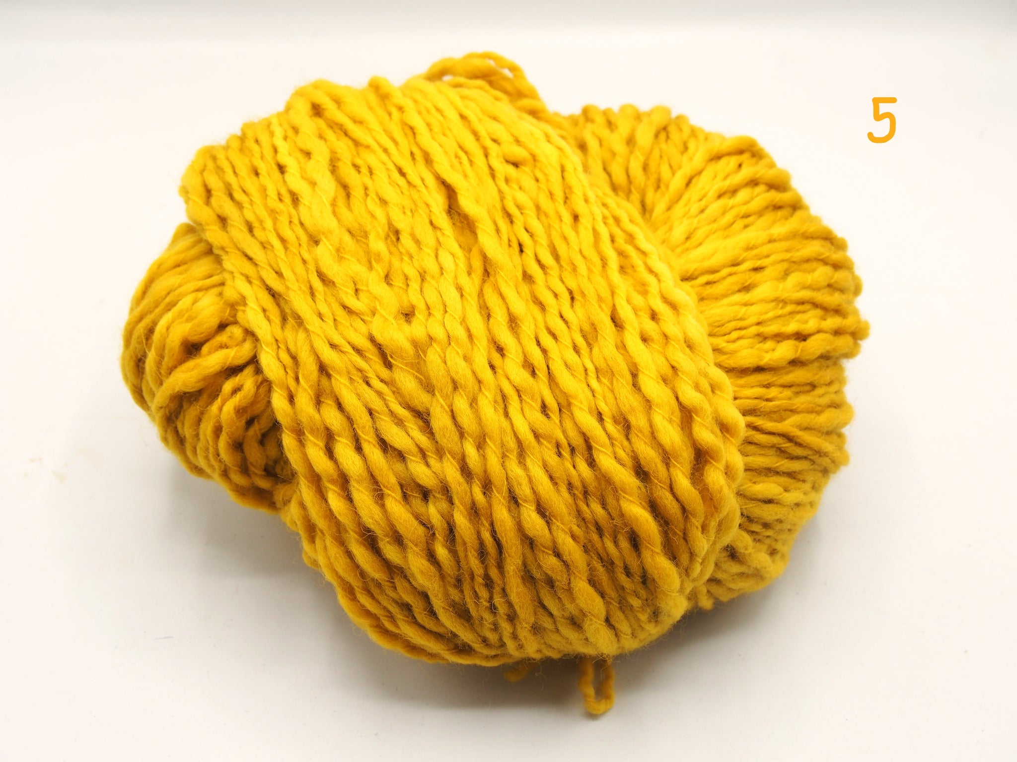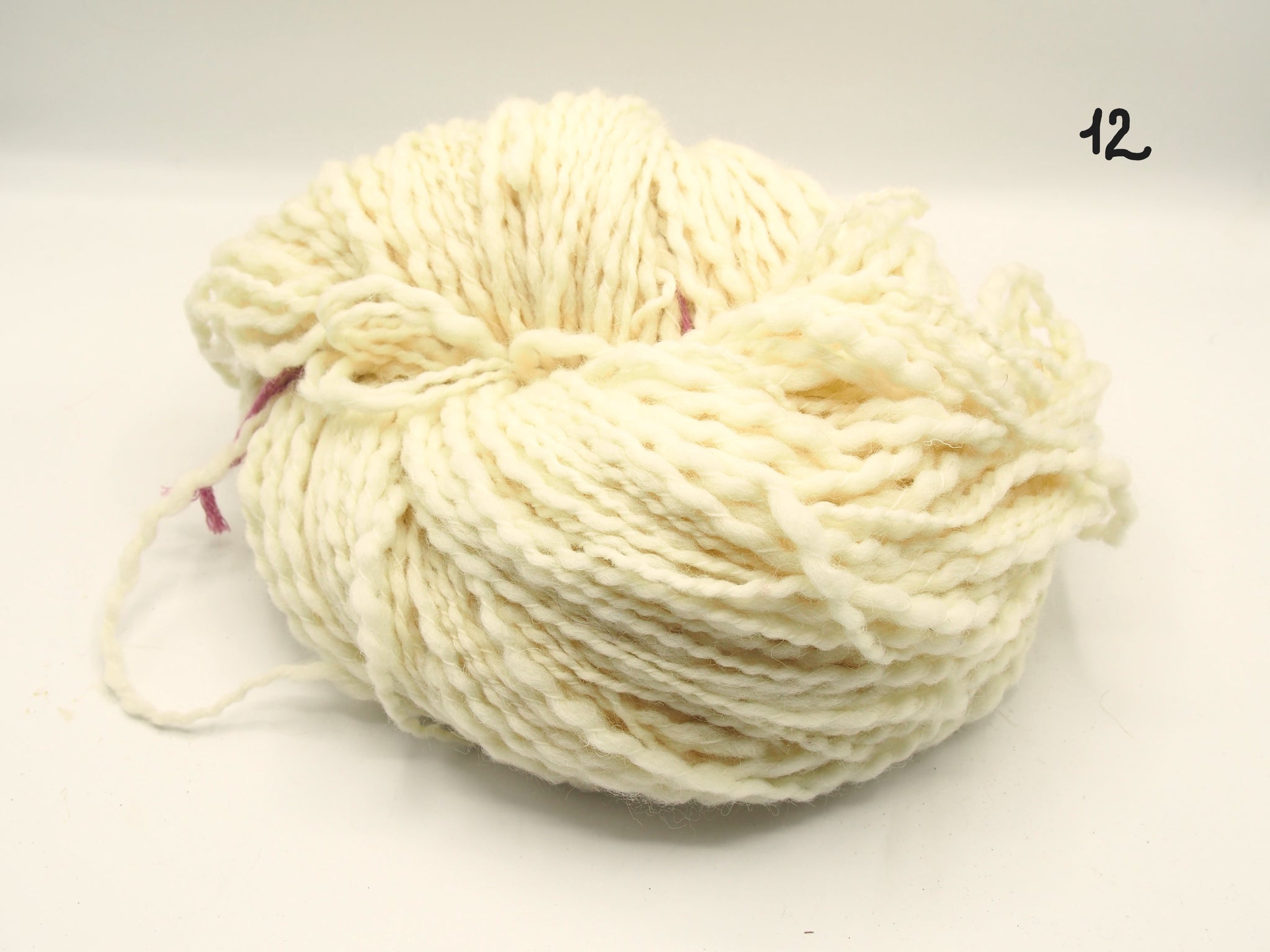 La particolarità di questo filato grosso, oltre alla tintura naturale è l'irregolarità della filatura. (Filato spesso che diventa molto sottile, così alternati). Questo permette di creare un gioco di spessori nel prodotto finito anche se si effettuano punti molto semplici.